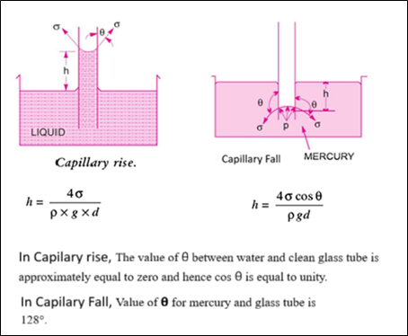 It is expressed in terms of cm or mm of liquid. Its value depends upon the specific weight of the liquid, the diameter of the tube and the surface tension of the liquid.